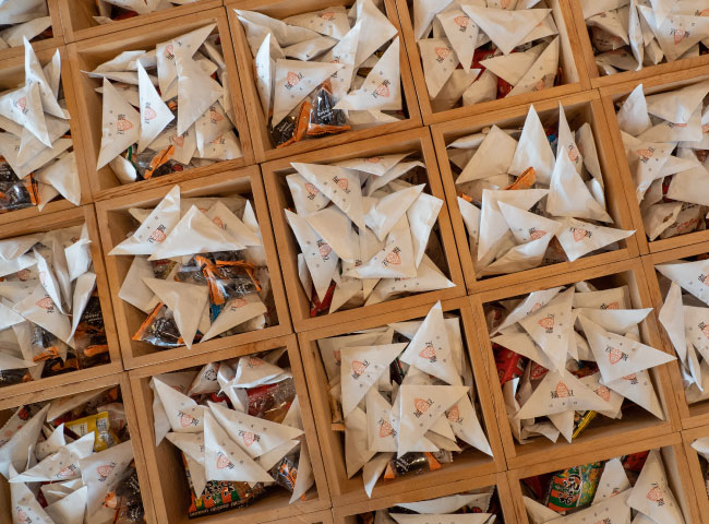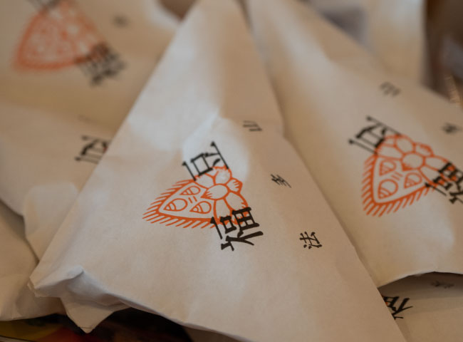 将軍家より「くし団子」と御命名を賜り、以来150年以上、法多山名物【厄除団子】として、今も広く親しまれています。