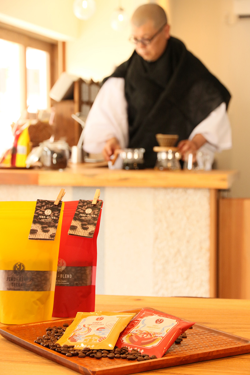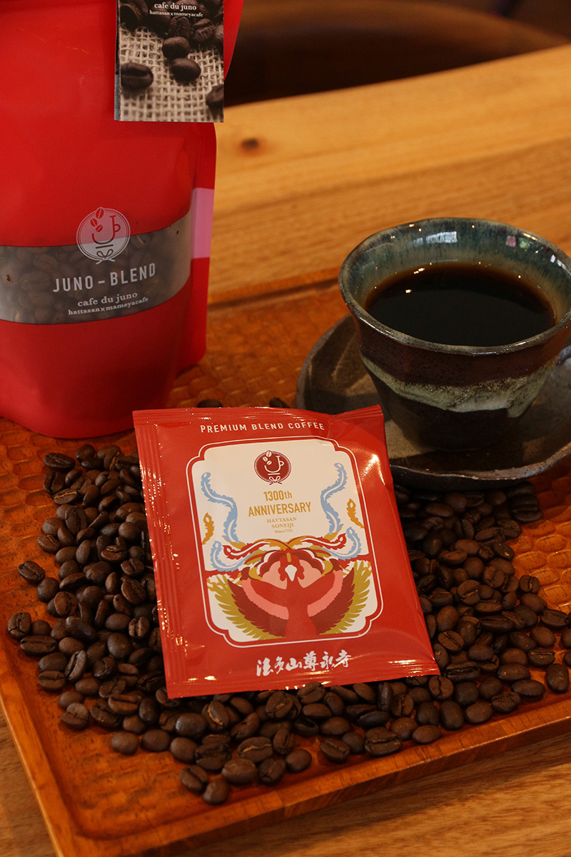 法多山住職である大谷純應氏の名前から名づけられた「JUNO-BLEND」は、まめやカフェ濱小路氏と開発されたここにしかないブランドコーヒーです。
